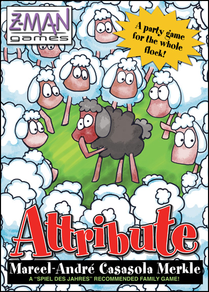 For a time Apples to Apples was a dominant party game in many circles. But what once felt silly and comical eventually became repetitive and dull, the laughter forced. I know a lot of gamers have gone through that same cycle, to various degrees, and the game languishes or gets donated. I still like the base mechanism, though, so it was with some excitement and some trepidation that I approached Attribute, a game billed as “Apples to Apples only much better”. Thankfully, it fully delivered on the promise. In a small but delicious moment of content creations, each turn one player comes up with the noun in question. This can be as specific and funny as the player wants it to be: the White House bathroom, my mother-in-law, puppy kisses. Then everyone chooses an adjective from the set they have in their hand, with the intent of having it match well if they were dealt a green sheep card at the start of the round. If they were dealt a red sheep card, they try to not match as much as possible. When all adjective cards are flipped players look around the table, trying to quickly judge whether each player was dealt a green or red sheep card based on the adjective card in front of them. If they think someone is a green, they may race to grab the face down sheep card from in front of that person. Once all the dust has settled, and each person has taken a card if they want to, the sheep cards are revealed and points are given based on which ones were taken. This scoring can take a bit for non-gamers to get their heads around, but the ideas behind it are pretty easy to grok; players will intuit what to do right away. The game still allows for the fun lateral thinking and matching, while also adding a creative element. Most importantly, it gets rid of the arbitrariness of the judge, which is the main improvement over Apples to Apples.