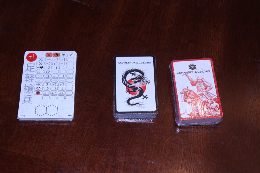 The other game in the box is a version of the well-known Command and Colors series. Like other C&C games, the game is driven by Command Cards which given units their movement orders. This version of the game also includes some Dragon cards which “represent powerful, mythical, and sometimes unexplainable abilities”. You gain the ability to play these Dragon cards by collecting and spending Honor & Fortune tokens.