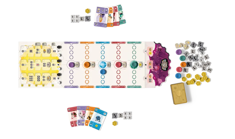 Players will struggle to gain Influence on the 5 planets: Mercury, Venus, Earth, Mars, and Jupiter. This Influence is represented by discs in different colors.